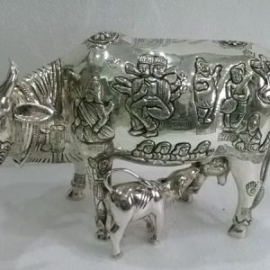 Silver Quoted Wooden Cow with Calf